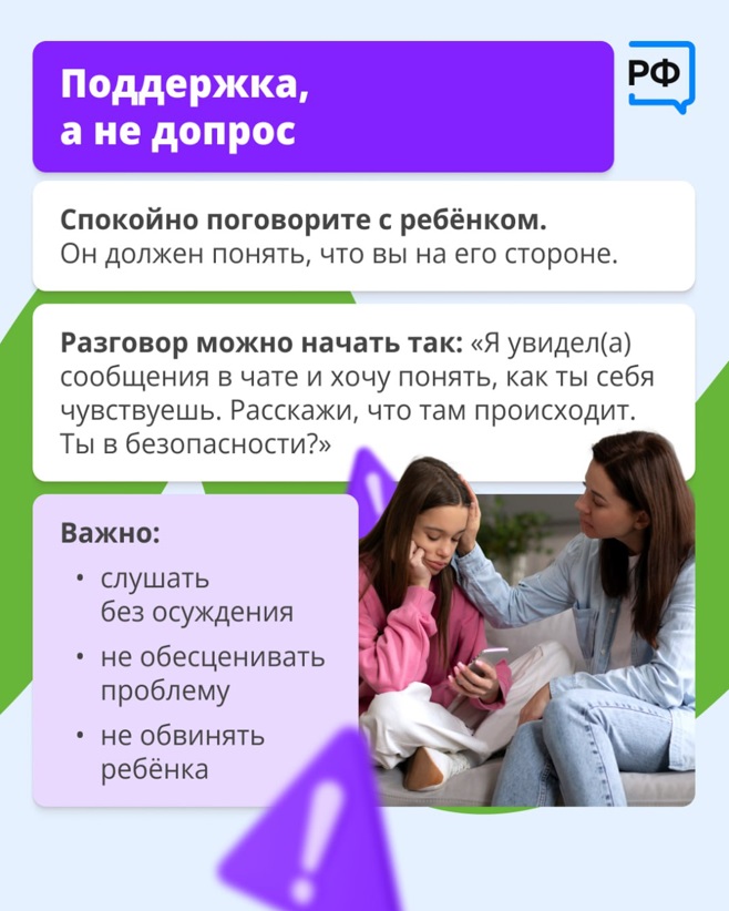 Проект в формате лендинговой страницы в сети Интернет, реализованный Минцифры России в рамках всероссийской программы кибергигиены и повышения грамотности граждан Российской Федерации. На сайте проекта размещена информация для каждого из участников кибербуллинга: жертвы, агрессора и наблюдателя